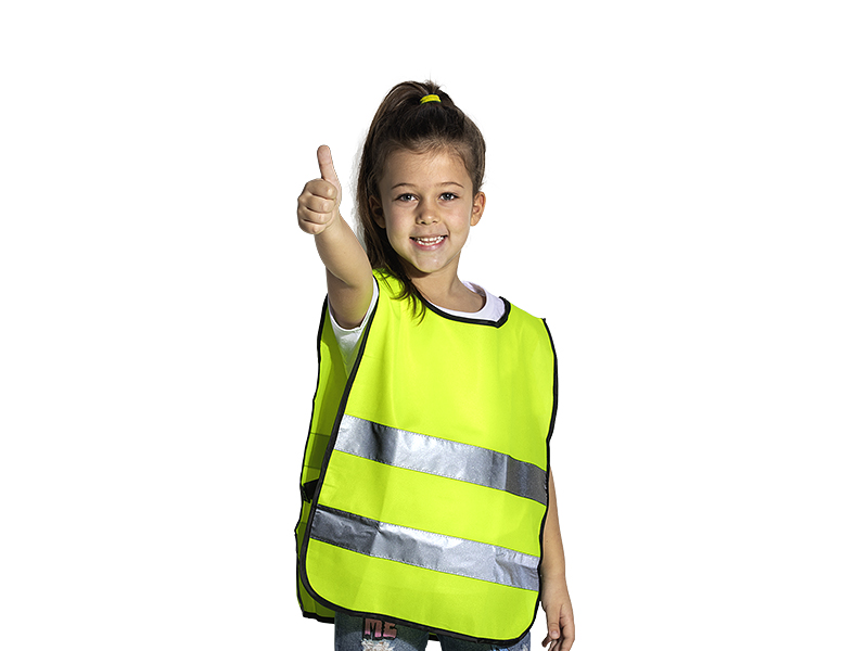 Dečji sigurnosni prsluk Dečji prsluk, fluorescentni, dve reflektivne trake napred i dve pozadi Veličina: univerzalna Standard: EN 20471 Sastav: 100% poliester Pakovanje: 200/10/1 Preporučena štampa: sito, preslikač, sublimacija